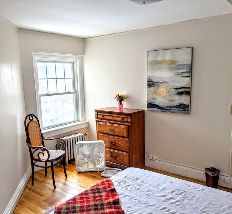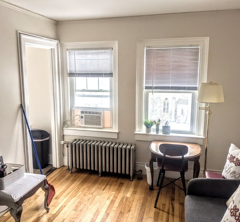 Bright, airy one-bedroom with polished hardwood floors, elevator access, and on-site laundry convenience.
